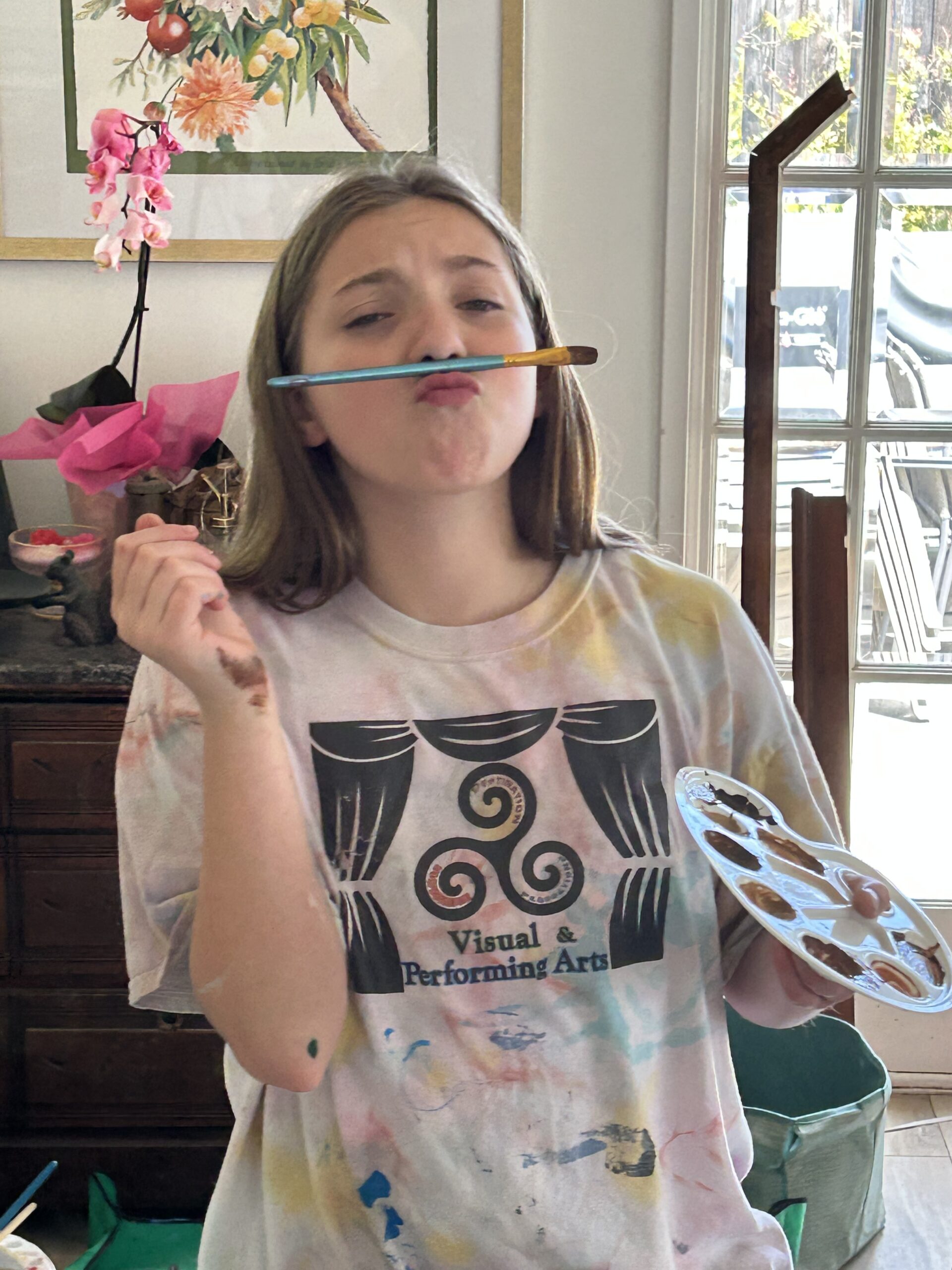 Projects include acrylic, watercolor, gouache, dyes and oil paint on canvas, wood, fabric and clay to name a few.